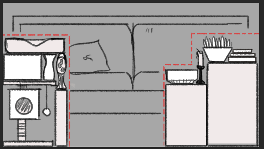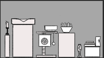 Designed how the tidy puzzle will look out and work in Photoshop, so artist knows what assets to draw for it. First picture is how the puzzle starts, and the second picture is the answer to puzzle. The only difference from the first to second image is that I changed broken box into a vase because visually it may be hard to show that in pixel art. Works very much like a puzzle where you have to make sure everything fits together in the right places.
